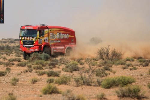 A equipa Bio-Ritmo® continua parada à espera de ajuda para levantar o MAN TGS de competição que ontem tombou numa zona de dunas do Erg Chegaga quando os portugueses de encontravam a cumprir a terceira etapa do Rallye Oilibya du Maroc. A formação lusa ainda encetou esforços no sentido de continuar em prova, mas esta situação estava dependente da ajuda que teriam que receber por parte do camião “vassoura” enviado pela organização em missão de resgate aos portugueses.